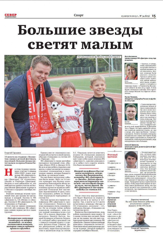 СМТ «Север Подмосковья» № 34 — пятница, 23 августа, стр. 14, «Большие звезды светят малым»