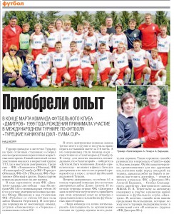 С 01 по 05 ноября 2012 года команда ФК «Дмитров»-2000 г.р. примет участие в международном турнире по футболу “Alliancetour Cup” в городе Пинск (Беларусь).